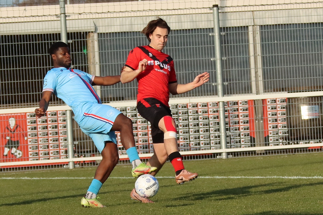Vitesse stelde daar wel wat tegenover, maar was niet doeltreffend. Dominique Ariës schoot van dichtbij over en even later naast, terwijl Mark de Graaf van dichtbij te zwak inschoot.