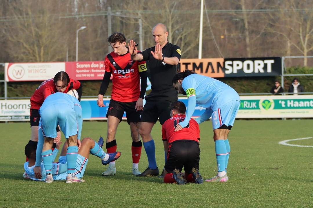 hadden de zaak achterin onder controle. Echter, scheidsrechter Eno Middelham negeerde het buiten-spelsignaal van de Delftse grensrechter, waardoor Prince Anokye kon scoren: 0-1 (16e min). `Een overduidelijk buitenspel-doelpunt`, volgens vele toeschouwers.