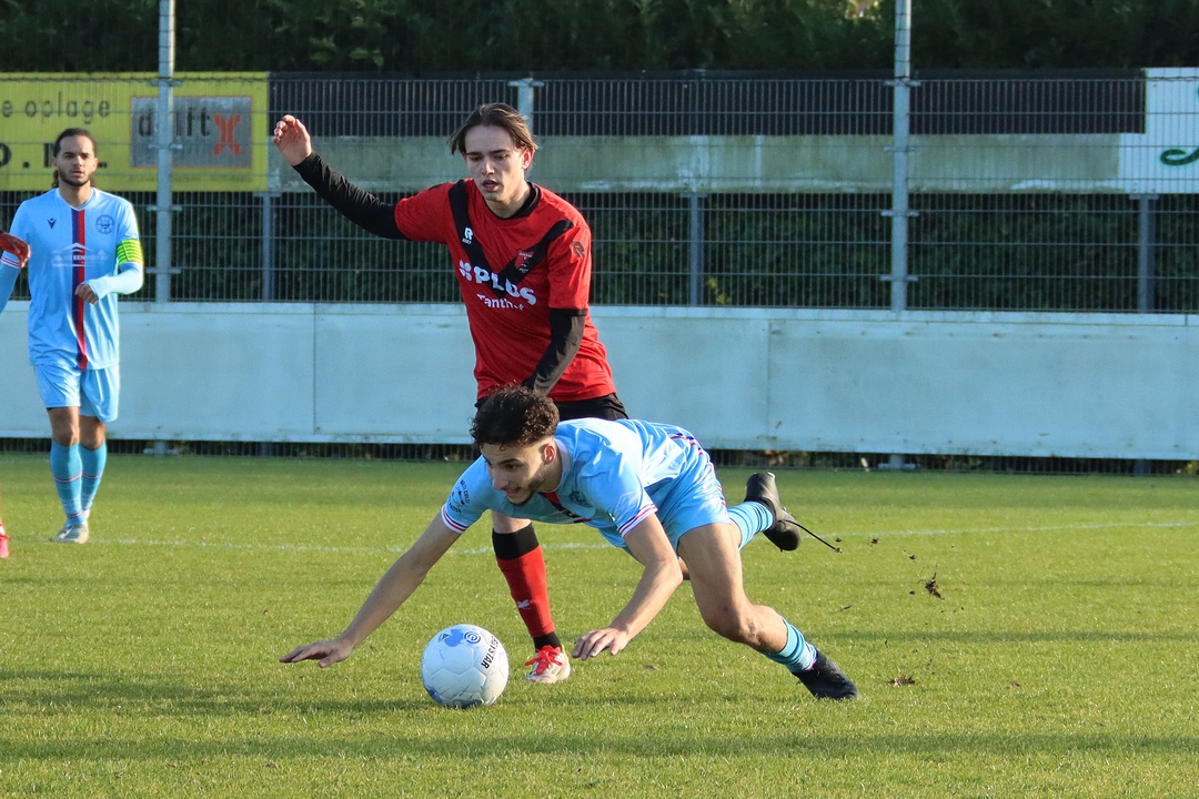 De opbouw van TAC`90 werd vroegtijdig verstoord. Dat bracht Gigi Vermeer vrij voor het doel, maar zijn schot ging naast.