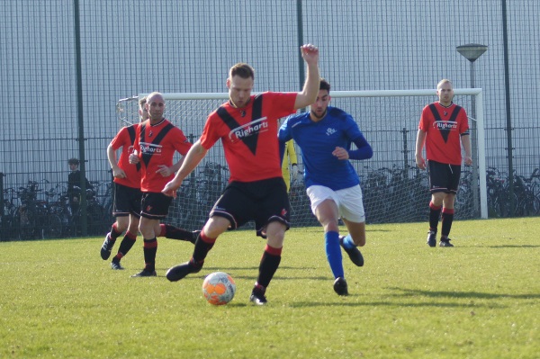 Dit pakte meteen goed uit. Danny stuurde met een mooie steekbal Maarten weg die de keeper omspeelde en zo de 3-0 binnen schoot. Maarten is 2019 goed begonnen met 4 doelpunten in 2 wedstrijden.. Khalid voelt dan ook de hete adem van Maarten in zijn nek als het gaat om de topscoorder titel.