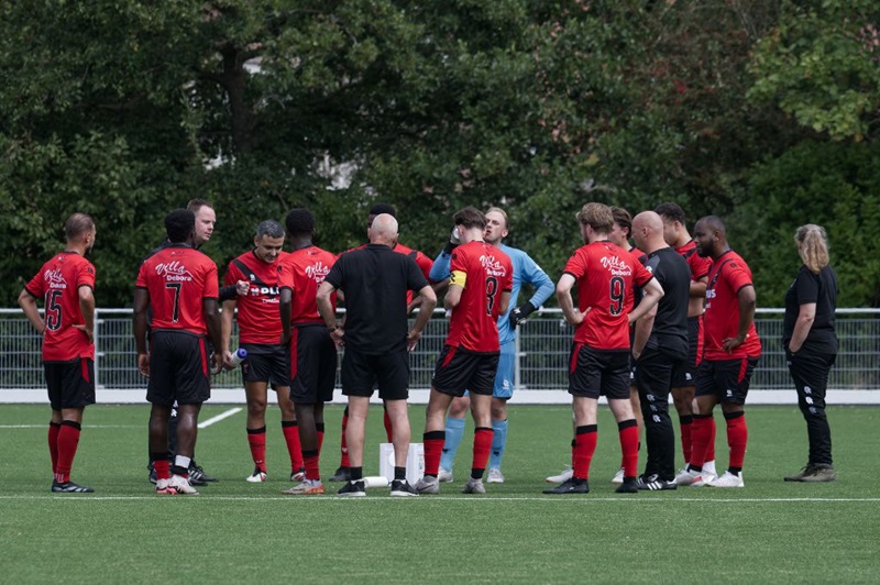 In de tweede helft was het beeld niet veel anders. Vitesse had wel het initiatief en dat leidde tot een doelpunt. Alec van Vliet kopte uit een corner de 1-3 binnen, maar door knullig balverlies werd de eindstand 1-4. Met de hoofden gebogen werd de kleedkamer opgezocht.